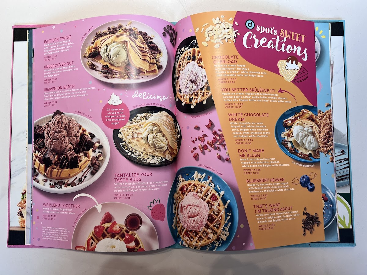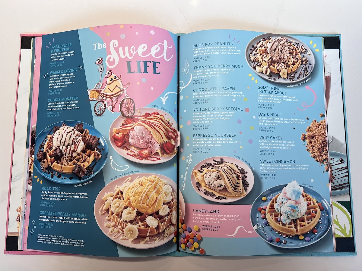These menu categories provide a range of choices suitable for dessert breaks, casual lunches, or light meals. Visitors can expect options that combine both sweet and savory flavors, accommodating different meal occasions throughout the day, including breakfast and afternoon snacks.